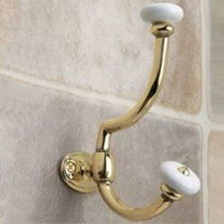 Best Sale π₯° Gatco Double Porcelain Robe Hook in Polished Brass π₯